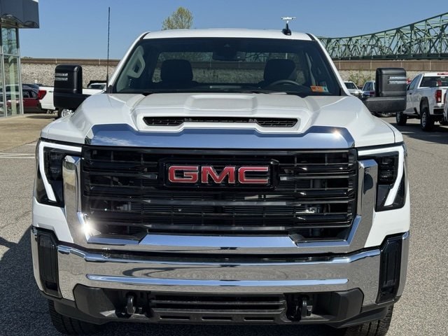 Summit White 2025 GMC Sierra 3500HD Pro 4WD 10-Speed Automatic Duramax 6.6L V8 Turbodiesel 120-Volt Bed Mounted Power Outlet, 120-Volt Instrument Panel Power Outlet, 2 Charge/Data USB Ports, 2 Speakers, 2-Speaker Audio System Feature, 2-Speed Electronic Shift Transfer Case, 220 Amp Alternator, 4-Way Manual Driver Seat Adjuster, 4-Way Manual Passenger Seat Adjuster, 4-Wheel Disc Brakes, ABS brakes, Air Conditioning, AM/FM radio, Auto High-beam Headlights, Auto-Dimming Inside Rear-View Mirror, Automatic Emergency Braking, Brake assist, Buckle to Drive, Bumpers: chrome, Chrome Grille w/Flat Black Grille Insert Bars, Compass, Convenience Package, Deep-Tinted Glass, Delay-off headlights, Driver door bin, Dual front impact airbags, Dual front side impact airbags, Electric Rear-Window Defogger, Electronic Stability Control, Engine Block Heater, Exhaust Brake, Exterior Parking Camera Rear, EZ Lift Power Lock & Release Tailgate, Following Distance Indicator, Forward Collision Alert, Front 40/20/40 Split-Bench Seats w/Lockable Storage, Front anti-roll bar, Front Center Armrest w/Storage, Front License Plate Kit, Front Pedestrian Braking, Front reading lights, Front wheel independent suspension, Fully automatic headlights, Heated door mirrors, Heavy-Duty 80 Amp-Hr Battery, Illuminated entry, IntelliBeam Automatic High Beam On/Off, Lane Departure Warning System, LED Cargo Area Lighting, Low tire pressure warning, Occupant sensing airbag, Outside temperature display, Overhead airbag, Overhead console, Panic alarm, Passenger door bin, Passenger vanity mirror, Perimeter Lighting, Pickup Bed, Power door mirrors, Power steering, Power windows, Power-Adjustable Black Outside Mirrors, Preferred Equipment Group 1SA, Push Button Start, Radio: AM/FM w/GMC Infotainment System, Rear step bumper, Remote Keyless Entry, Remote keyless entry, Snow Plow Prep/Camper Package, Solar Absorbing Tinted Glass, Speed control, Suspension Package, Tachometer, Tilt steering wheel, Traction control, Trip computer, Turn signal indicator mirrors, Upfitter Switch Kit (5), Variably intermittent wipers, Vinyl Seat Trim, Voltmeter, Winter Grille Cover, Wireless Phone Projection.