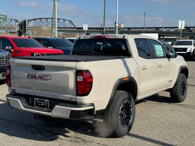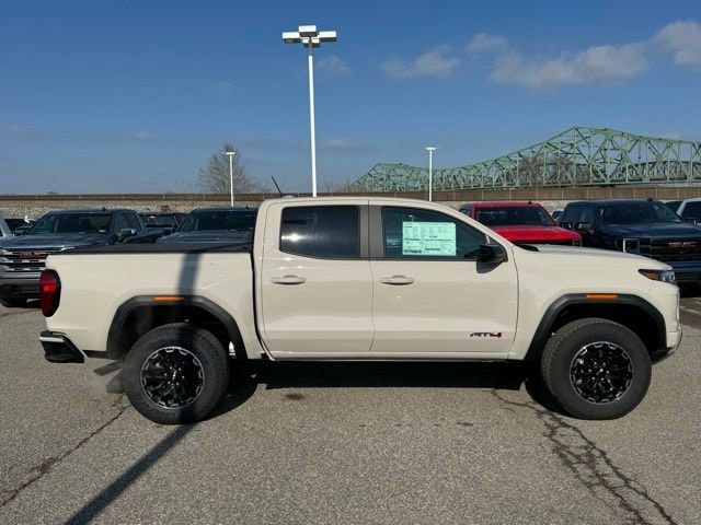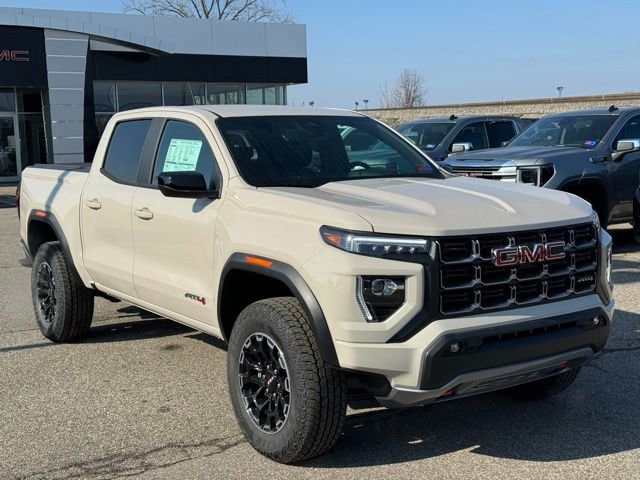Coastal Dune 2026 GMC Canyon AT4 4WD 8-Speed Automatic 2.7L I4 Turbocharged DOHC 16V LEV3-SULEV30 310hp 120-Volt Bed Mounted Power Outlet, 2 1st Row USB Charge/Data Ports, 2 Rear USB Ports in Center Console (Charge-Only), 3.42 Rear Axle Ratio, 4-Way Manual Front Passenger Seat Adjuster, 4-Wheel Disc Brakes, 6 Speakers, 6-Speaker Audio System Feature, 8-Way Power Driver Seat Adjuster, ABS brakes, Air Conditioning, Alloy wheels, AM/FM radio: SiriusXM with 360L, Apple CarPlay/Android Auto, Auto High-beam Headlights, Auto-dimming Rear-View mirror, Automatic Emergency Braking, Automatic Stop/Start, Automatic temperature control, Blind Zone Steering Assist with Trailering, Brake assist, Bumpers: body-color, Canyon Pro Safety, Canyon Safety Plus Package, Cloth/CoreTec Seat Trim, Compass, Delay-off headlights, Driver and Front Passenger Illuminated Visors, Driver door bin, Driver Mode Selector, Driver vanity mirror, Dual front impact airbags, Dual front side impact airbags, Dual-Zone Automatic Climate Control Air Conditioning, Electronic Stability Control, Emergency communication system: OnStar, EZ-Lift and Lower Tailgate, Following Distance Indicator, Forward Collision Alert, Front anti-roll bar, Front Bucket Seats, Front Center Armrest, Front dual zone A/C, Front fog lights, Front LED Fog Lamps, Front Passenger Seatback Map Pocket, Front Pedestrian and Bicyclist Braking, Front reading lights, Front wheel independent suspension, Hard Folding Truck Bed Cover, Heated door mirrors, Heated Driver and Front Passenger Seats, Heated front seats, Illuminated entry, Inside Rear-View Auto-Dimming Mirror, IntelliBeam Automatic High Beam on/Off, Interior Overhead Courtesy Light with Dual Reading Lamp, Lane Keep Assist with Lane Departure Warning, Low tire pressure warning, MultiStow Tailgate Storage Compartment, Navigation System, Occupant sensing airbag, Off-Road Suspension, Outside temperature display, Overhead airbag, Overhead console, Panic alarm, Passenger door bin, Passenger vanity mirror, Power door mirrors, Power Driver Lumbar Control Seat Adjuster, Power driver seat, Power steering, Power windows, Preferred Equipment Group 4SG, Radio data system, Radio: 11.3 Diagonal Premium GMC Infotainment System, Rear Cross Traffic Braking, Rear of Console 120-Volt Power Outlet, Rear reading lights, Rear step bumper, Rear window defroster, Remote keyless entry, Remote Vehicle Starter System, Security system, SiriusXM with 360L, Speed control, Speed-sensing steering, Split folding rear seat, Spray-on Bedliner with GMC Logo, Steering wheel mounted audio controls, Stop/Start System Disable Button Engine Control, Tachometer, Tailgate Keyed Cylinder Lock, Telescoping steering wheel, Til and Telescopic Manual Steering Column, Tilt steering wheel, Traction control, Trip computer, Ultrasonic Rear Park Assist, Variably intermittent wipers, Wheels: 18 x 8.5 Gloss Black Aluminum, Wireless Apple CarPlay/Wireless Android Auto.