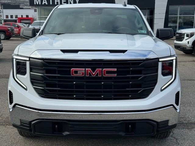 Summit White 2026 GMC Sierra 1500 Pro 4WD 10-Speed Automatic EcoTec3 5.3L V8 170 Amp Alternator, 2 Charge/Data USB Ports, 220 Amp Alternator, 4-Way Manual Driver Seat Adjuster, 4-Way Manual Passenger Seat Adjuster, 4-Wheel Disc Brakes, 6 Speakers, 6-Speaker Audio System Feature, ABS brakes, Air Conditioning, AM/FM radio, Apple CarPlay/Android Auto, Auto High-beam Headlights, Auto-Locking Rear Differential, Automatic Emergency Braking, Auxiliary External Transmission Oil Cooler, Brake assist, Buckle to Drive, Bumpers: chrome, Chrome Header with Flat Black Grille Insert Bars, Compass, Convenience Package, Deep-Tinted Glass, Delay-off headlights, Driver door bin, Dual front impact airbags, Dual front side impact airbags, Electric Rear-Window Defogger, Electronic Stability Control, Emergency communication system: OnStar, External Engine Oil Cooling, EZ Lift Power Lock and Release Tailgate, Following Distance Indicator, Forward Collision Alert, Front 40/20/40 Split-Bench Seat, Front anti-roll bar, Front Center Armrest w/Storage, Front Frame-Mounted Black Recovery Hooks, Front Pedestrian Braking, Front reading lights, Front wheel independent suspension, Fully automatic headlights, HD Rear Vision Camera, Heated Power-Adjustable Outside Mirrors, Hitch Guidance, Illuminated entry, Integrated Trailer Brake Controller, IntelliBeam Automatic High Beam on/Off, Lane Keep Assist with Lane Departure Warning, LED Cargo Area Lighting, Low tire pressure warning, Occupant sensing airbag, OnStar Services Capable, Outside temperature display, Overhead airbag, Overhead console, Panic alarm, Passenger door bin, Passenger vanity mirror, Power Door Locks, Power Front Windows with Driver Express Up/Down, Power Front Windows with Passenger Express Down, Power Rear Windows with Express Down, Power steering, Power windows, Preferred Equipment Group 1SA, Pro Value Package, Push Button Start, Radio data system, Radio: GMC Infotainment Audio System, Rear reading lights, Rear step bumper, Remote Keyless Entry, Remote keyless entry, Solar Absorbing Tinted Glass, Speed control, Speed-sensing steering, Split folding rear seat, Spray-on Pickup Bedliner, Standard Suspension Package, Tachometer, Tilt steering wheel, Traction control, Trailering Package, Trip computer, Variably intermittent wipers, Vinyl Seat Trim, Voltmeter, Wheels: 17 x 8 Silver Painted Steel, Wi-Fi Hotspot Capable, Wireless Apple CarPlay/Wireless Android Auto.