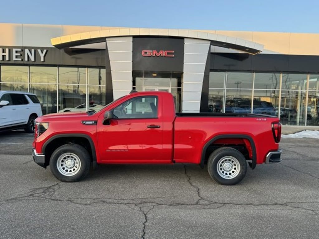 Cardinal Red 2026 GMC Sierra 1500 Pro 4WD 8-Speed Automatic 2.7L I4 Turbocharged DOHC 16V LEV3-SULEV30 310hp 2 Charge/Data USB Ports, 2 Speakers, 2-Speaker Audio System Feature, 220 Amp Alternator, 3.42 Rear Axle Ratio, 4-Way Manual Driver Seat Adjuster, 4-Way Manual Passenger Seat Adjuster, 4-Wheel Disc Brakes, ABS brakes, Air Conditioning, AM/FM radio, Apple CarPlay/Android Auto, Auto High-beam Headlights, Automatic Emergency Braking, Brake assist, Buckle to Drive, Bumpers: chrome, Chrome Header with Flat Black Grille Insert Bars, Compass, Convenience Package, Deep-Tinted Glass, Delay-off headlights, Driver door bin, Dual front impact airbags, Dual front side impact airbags, Electric Rear-Window Defogger, Electronic Stability Control, Emergency communication system: OnStar, EZ Lift Power Lock and Release Tailgate, Following Distance Indicator, Forward Collision Alert, Front 40/20/40 Split-Bench Seat, Front anti-roll bar, Front Center Armrest w/Storage, Front Frame-Mounted Black Recovery Hooks, Front Pedestrian Braking, Front reading lights, Front wheel independent suspension, Fully automatic headlights, HD Rear Vision Camera, Heated door mirrors, Illuminated entry, IntelliBeam Automatic High Beam on/Off, Lane Keep Assist with Lane Departure Warning, LED Cargo Area Lighting, Low tire pressure warning, Occupant sensing airbag, OnStar Services Capable, Outside temperature display, Overhead airbag, Overhead console, Panic alarm, Passenger door bin, Passenger vanity mirror, Power Door Locks, Power door mirrors, Power Front Windows with Driver Express Up/Down, Power Front Windows with Passenger Express Down, Power steering, Power windows, Preferred Equipment Group 1SA, Push Button Start, Radio data system, Radio: GMC Infotainment Audio System, Rear reading lights, Rear step bumper, Remote Keyless Entry, Remote keyless entry, Solar Absorbing Tinted Glass, Speed control, Speed-sensing steering, Spray-on Pickup Bedliner, Standard Suspension Package, Tachometer, Tilt steering wheel, Traction control, Trip computer, Variably intermittent wipers, Vinyl Seat Trim, Voltmeter, Wheels: 17 x 8 Silver Painted Steel, Wi-Fi Hotspot Capable, Wireless Apple CarPlay/Wireless Android Auto.