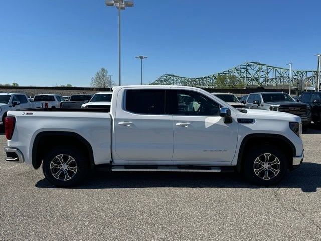 Summit White 2026 GMC Sierra 1500 SLE 4WD 10-Speed Automatic EcoTec3 5.3L V8 10-Way Power Driver Seat Adjuster with Lumbar, 120-Volt Bed Mounted Power Outlet, 120-Volt Interior Power Outlet, 170 Amp Alternator, 2 Charge/Data USB Ports, 2 Type-C Charge-Only Rear USB Ports, 220 Amp Alternator, 3.23 Rear Axle Ratio, 4-Way Manual Passenger Seat Adjuster, 4-Wheel Disc Brakes, 6 Speakers, 6-Speaker Audio System Feature, ABS brakes, Adaptive Cruise Control, Air Conditioning, All-Weather Floor Liner, Alloy wheels, AM/FM radio: SiriusXM with 360L, Apple CarPlay/Android Auto, Auto High-beam Headlights, Auto-Locking Rear Differential, Automatic Emergency Braking, Automatic temperature control, Auxiliary External Transmission Oil Cooler, Brake assist, Buckle to Drive, Bumpers: chrome, Chrome Header with Medium Silver Grille Insert Bars, Chrome Wheel to Wheel Assist Steps, Cloth Seat Trim, Color-Keyed Carpeting Floor Covering, Compass, Deep-Tinted Glass, Delay-off headlights, Driver door bin, Driver vanity mirror, Dual Exhaust System, Dual front impact airbags, Dual front side impact airbags, Dual-Zone Automatic Climate Control, Electric Rear-Window Defogger, Electronic Stability Control, Emergency communication system: OnStar, External Engine Oil Cooling, Following Distance Indicator, Forward Collision Alert, Front 40/20/40 Split-Bench Seat, Front anti-roll bar, Front Center Armrest w/Storage, Front dual zone A/C, Front Frame-Mounted Black Recovery Hooks, Front Pedestrian Braking, Front reading lights, Front Rubberized-Vinyl Floor Mats, Front wheel independent suspension, Fully automatic headlights, HD Rear Vision Camera, Heated door mirrors, Heated Driver and Front Outboard Passenger Seating, Heated front seats, Heated steering wheel, Heavy-Duty Air Filter, Hill Descent Control, Hitch Guidance, Hitch View, Illuminated entry, in-Vehicle Trailering System App, Integrated Trailer Brake Controller, IntelliBeam Automatic High Beam on/Off, Keyless Open and Start, Lane Keep Assist with Lane Departure Warning, LED Cargo Area Lighting, Low tire pressure warning, Manual Tilt-Wheel and Telescoping Steering Column, Navigation System, Occupant sensing airbag, Off-Road Suspension, OnStar Services Capable, Outside temperature display, Overhead airbag, Overhead console, Panic alarm, Passenger door bin, Passenger vanity mirror, Power Door Locks, Power door mirrors, Power driver seat, Power Front Windows with Driver Express Up/Down, Power Front Windows with Passenger Express Down, Power Rear Windows with Express Down, Power Sliding Rear Window with Rear Defogger, Power steering, Power windows, Preferred Equipment Group 3SA, Preferred Package, Push Button Start, Radio data system, Radio: Premium GMC Infotainment Audio System, Rear reading lights, Rear Rubberized-Vinyl Floor Mats, Rear step bumper, Rear Wheelhouse Liners, Rear window defroster, Remote keyless entry, Remote Start Package, Remote Vehicle Starter System, Security system, SiriusXM with 360L Trial Subscription, SLE Convenience Package, SLE Value Package, Speed control, Speed-sensing steering, Split folding rear seat, Spray-on Pickup Bedliner with GMC Logo, Standard Suspension Package, Steering Wheel Audio Controls, Steering wheel mounted audio controls, Tachometer, Telescoping steering wheel, Theft Deterrent System (unauthorized Entry), Tilt steering wheel, Traction control, Trailering Package, Trip computer, Universal Home Remote, Variably intermittent wipers, Voltmeter, Wheels: 17 x 8 Bright Silver Painted Aluminum, Wheels: 18 x 8.5 6-Spoke Machined Aluminum, Wi-Fi Hotspot Capable, Wireless Apple CarPlay/Wireless Android Auto, X31 Hard Badge, X31 Off-Road Package.