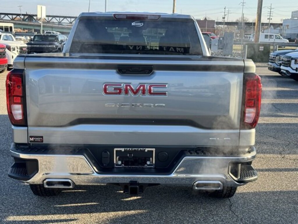 Sterling Metallic 2026 GMC Sierra 1500 SLE 4WD 10-Speed Automatic EcoTec3 5.3L V8 10-Way Power Driver Seat Adjuster with Lumbar, 120-Volt Bed Mounted Power Outlet, 120-Volt Interior Power Outlet, 170 Amp Alternator, 2 Charge/Data USB Ports, 2 Type-C Charge-Only Rear USB Ports, 220 Amp Alternator, 3.23 Rear Axle Ratio, 4-Way Manual Passenger Seat Adjuster, 4-Wheel Disc Brakes, 6 Speakers, 6-Speaker Audio System Feature, ABS brakes, Air Conditioning, All-Weather Floor Liner, Alloy wheels, AM/FM radio: SiriusXM with 360L, Apple CarPlay/Android Auto, Auto High-beam Headlights, Auto-Locking Rear Differential, Automatic Emergency Braking, Automatic temperature control, Auxiliary External Transmission Oil Cooler, Brake assist, Buckle to Drive, Bumpers: chrome, Chrome Header with Medium Silver Grille Insert Bars, Cloth Seat Trim, Color-Keyed Carpeting Floor Covering, Compass, Deep-Tinted Glass, Delay-off headlights, Driver door bin, Driver vanity mirror, Dual Exhaust System, Dual front impact airbags, Dual front side impact airbags, Dual-Zone Automatic Climate Control, Electric Rear-Window Defogger, Electronic Stability Control, Emergency communication system: OnStar, External Engine Oil Cooling, Following Distance Indicator, Forward Collision Alert, Front 40/20/40 Split-Bench Seat, Front anti-roll bar, Front Center Armrest w/Storage, Front dual zone A/C, Front Frame-Mounted Black Recovery Hooks, Front Pedestrian Braking, Front reading lights, Front Rubberized-Vinyl Floor Mats, Front wheel independent suspension, Fully automatic headlights, HD Rear Vision Camera, Heated door mirrors, Heated Driver and Front Outboard Passenger Seating, Heated front seats, Heated steering wheel, Heavy-Duty Air Filter, Hill Descent Control, Hitch Guidance, Illuminated entry, Integrated Trailer Brake Controller, IntelliBeam Automatic High Beam on/Off, Keyless Open and Start, Lane Keep Assist with Lane Departure Warning, LED Cargo Area Lighting, Low tire pressure warning, Manual Tilt-Wheel and Telescoping Steering Column, Navigation System, Occupant sensing airbag, Off-Road Suspension, OnStar Services Capable, Outside temperature display, Overhead airbag, Overhead console, Panic alarm, Passenger door bin, Passenger vanity mirror, Power Door Locks, Power door mirrors, Power driver seat, Power Front Windows with Driver Express Up/Down, Power Front Windows with Passenger Express Down, Power Rear Windows with Express Down, Power steering, Power windows, Preferred Equipment Group 3SA, Push Button Start, Radio data system, Radio: Premium GMC Infotainment Audio System, Rear reading lights, Rear Rubberized-Vinyl Floor Mats, Rear step bumper, Rear Wheelhouse Liners, Rear window defroster, Remote keyless entry, Remote Start Package, Remote Vehicle Starter System, Security system, SiriusXM with 360L Trial Subscription, SLE Convenience Package, SLE Value Package, Speed control, Speed-sensing steering, Split folding rear seat, Standard Suspension Package, Steering Wheel Audio Controls, Steering wheel mounted audio controls, Tachometer, Telescoping steering wheel, Theft Deterrent System (unauthorized Entry), Tilt steering wheel, Traction control, Trailering Package, Trip computer, Variably intermittent wipers, Voltmeter, Wheels: 17 x 8 Bright Silver Painted Aluminum, Wheels: 18 x 8.5 6-Spoke Machined Aluminum, Wi-Fi Hotspot Capable, Wireless Apple CarPlay/Wireless Android Auto, X31 Hard Badge, X31 Off-Road Package.Recent Arrival!
