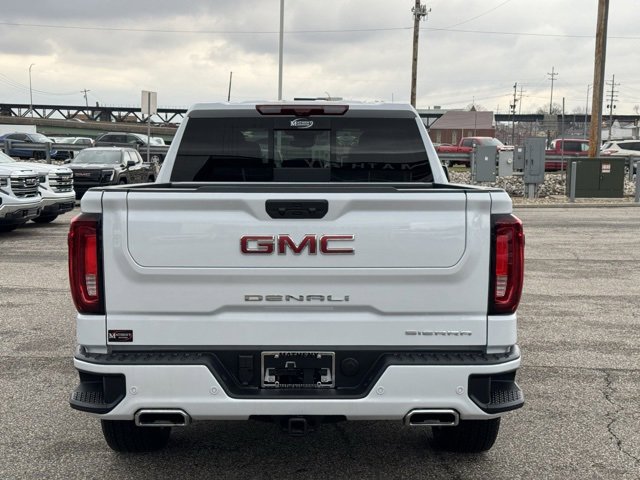 Glacier White Tricoat 2026 GMC Sierra 1500 Denali 4WD 10-Speed Automatic EcoTec3 6.2L V8 12-Way Power Driver Seat Adjuster with Lumbar, 12-Way Power Passenger Seat Adjuster with Lumbar, 120-Volt Bed Mounted Power Outlet, 120-Volt Interior Power Outlet, 170 Amp Alternator, 2 Charge/Data USB Ports Inside Center Console, 2 Type-C Charge-Only Rear USB Ports, 2 USB Ports, 3.23 Rear Axle Ratio, 4-Wheel Disc Brakes, 7 Speakers, ABS brakes, Adaptive suspension, Air Conditioning, Alloy wheels, AM/FM radio: SiriusXM with 360L, Apple CarPlay/Android Auto, Auto High-beam Headlights, Auto-dimming door mirrors, Auto-dimming Rear-View mirror, Auto-Locking Rear Differential, Automatic temperature control, Auxiliary External Transmission Oil Cooler, Bed View Camera, Brake assist, Buckle to Drive, Bumpers: body-color, Chrome Header with Signature Denali Chrome Grille, Chrome Recovery Hooks, Chrome Wheel to Wheel Assist Steps, Color-Keyed Carpeting Floor Covering, Compass, Deep-Tinted Glass, Delay-off headlights, Denali Premium Suspension with Adaptive Ride Control, Denali Reserve Package, Driver door bin, Driver Memory, Driver vanity mirror, Dual Active Exhaust, Dual front impact airbags, Dual front side impact airbags, Electric Rear-Window Defogger, Electronic Stability Control, Emergency communication system: OnStar, Enhanced Automatic Emergency Braking, Floor-Mounted Center Console, Following Distance Indicator, Forge Perforated Leather Seat Trim, Forward Collision Alert, Front anti-roll bar, Front Bucket Seats, Front Center Armrest, Front dual zone A/C, Front fog lights, Front License Plate Kit, Front Pedestrian Braking, Front Premium Floor Liners with Removable Carpet Insert, Front Rain-Sensing Wipers, Front reading lights, Front wheel independent suspension, Fully automatic headlights, Garage door transmitter, Genuine wood console insert, Genuine wood dashboard insert, Genuine wood door panel insert, GMC MultiPro Power Steps, HD Surround Vision, Heated 2nd Row Outboard Seats, Heated door mirrors, Heated Driver and Front Outboard Passenger Seating, Heated front seats, Heated rear seats, Heated steering wheel, Heavy-Duty Air Filter, Hill Descent Control, Hitch Guidance, Hitch View, Illuminated entry, in-Vehicle Trailering System App, Integrated Trailer Brake Controller, IntelliBeam Automatic High Beam on/Off, Keyless Open and Start, Lane Keep Assist with Lane Departure Warning, LED Cargo Area Lighting, Low tire pressure warning, Memory seat, Multicolor 15 Diagonal Head-Up Display, Navigation System, Occupant sensing airbag, OnStar Services Capable, Outside temperature display, Overhead airbag, Overhead console, Panic alarm, Passenger door bin, Passenger vanity mirror, Perimeter Lighting, Power Door Locks, Power door mirrors, Power driver seat, Power Front Passenger Windows with Express Up/Down, Power Front Windows with Driver Express Up/Down, Power passenger seat, Power Rake and Telescoping Steering Column, Power Rear Windows with Express Down, Power Sliding Rear Window with Rear Defogger, Power steering, Power Sunroof, Power windows, Preferred Equipment Group 5SA, Premium Bose 7-Speaker Sound System, Push Button Start, Radio data system, Radio: Premium GMC Infotainment Audio System, Rain sensing wipers, Rear Camera Mirror, Rear Cross Traffic Braking, Rear Pedestrian Detection, Rear Premium Floor Liners with Removable Carpet Insert, Rear reading lights, Rear seat center armrest, Rear step bumper, Rear Wheelhouse Liners, Rear window defroster, Remote keyless entry, Remote Vehicle Starter System, Safety Alert Seat, Security system, SiriusXM with 360L Trial Subscription, Speed control, Speed-sensing steering, Split folding rear seat, Spray-on Pickup Bedliner with GMC Logo, Steering Wheel Audio Controls, Steering wheel mounted audio controls, Tachometer, Technology Package, Telescoping steering wheel, Theft Deterrent System (unauthorized Entry), Tilt steering wheel, Traction control, Trailer Camera Provisions, Trailer Side Blind Zone Alert