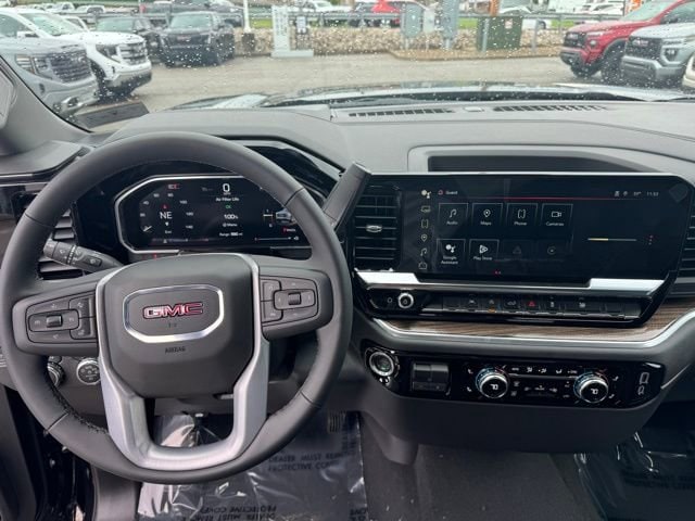 Titanium Rush Metallic 2026 GMC Sierra 1500 Elevation 4WD 8-Speed Automatic 2.7L I4 Turbocharged DOHC 16V LEV3-SULEV30 310hp 10-Way Power Driver Seat Adjuster with Lumbar, 120-Volt Bed Mounted Power Outlet, 120-Volt Interior Power Outlet, 2 Charge/Data USB Ports, 2 Type-C Charge-Only Rear USB Ports, 220 Amp Alternator, 3.42 Rear Axle Ratio, 4-Way Manual Passenger Seat Adjuster, 4-Wheel Disc Brakes, 6 Speakers, 6-Speaker Audio System Feature, 6 Rectangular Black Tubular Assist Steps, ABS brakes, Air Conditioning, Alloy wheels, AM/FM radio: SiriusXM with 360L, Apple CarPlay/Android Auto, Auto High-beam Headlights, Auto-Locking Rear Differential, Automatic Emergency Braking, Automatic temperature control, Body Color Header with Gloss Black Mesh Grille Bars, Brake assist, Buckle to Drive, Bumpers: body-color, Cloth Seat Trim, Color-Keyed Carpeting Floor Covering, Compass, Deep-Tinted Glass, Delay-off headlights, Driver door bin, Driver vanity mirror, Drop-in Bed Liner with Tailgate Liner, Dual front impact airbags, Dual front side impact airbags, Electric Rear-Window Defogger, Electronic Stability Control, Emergency communication system: OnStar, Following Distance Indicator, Forward Collision Alert, Front 40/20/40 Split-Bench Seat, Front anti-roll bar, Front Center Armrest w/Storage, Front dual zone A/C, Front fog lights, Front Frame-Mounted Black Recovery Hooks, Front Pedestrian Braking, Front reading lights, Front Rubberized-Vinyl Floor Mats, Front wheel independent suspension, Fully automatic headlights, HD Rear Vision Camera, Heated door mirrors, Heated Driver and Front Outboard Passenger Seating, Heated front seats, Heated steering wheel, High Capacity Suspension Package, Hitch Guidance, Illuminated entry, Integrated Trailer Brake Controller, IntelliBeam Automatic High Beam on/Off, Keyless Open and Start, Lane Keep Assist with Lane Departure Warning, LED Cargo Area Lighting, Low tire pressure warning, Manual Tilt-Wheel and Telescoping Steering Column, Navigation System, Occupant sensing airbag, OnStar Services Capable, Outside temperature display, Overhead airbag, Overhead console, Panic alarm, Passenger door bin, Passenger vanity mirror, Power Door Locks, Power door mirrors, Power driver seat, Power Front Windows with Driver Express Up/Down, Power Front Windows with Passenger Express Down, Power Rear Windows with Express Down, Power steering, Power windows, Push Button Start, Radio data system, Radio: Premium GMC Infotainment Audio System, Rear reading lights, Rear Rubberized-Vinyl Floor Mats, Rear seat center armrest, Rear step bumper, Rear window defroster, Remote keyless entry, Remote Vehicle Starter System, Security system, SiriusXM with 360L Trial Subscription, Soft Rolling Truck Bed Cover (LPO), Speed control, Speed-sensing steering, Split folding rear seat, Steering Wheel Audio Controls, Steering wheel mounted audio controls, Tachometer, Telescoping steering wheel, Theft Deterrent System (unauthorized Entry), Tilt steering wheel, Traction control, Trailering Package, Trip computer, Variably intermittent wipers, Voltmeter, Wheels: : 20 x 9 High Gloss Black Painted Aluminum, Wi-Fi Hotspot Capable, Wireless Apple CarPlay/Wireless Android Auto.