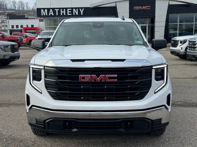 Summit White 2026 GMC Sierra 1500 Pro 4WD 8-Speed Automatic 2.7L I4 Turbocharged DOHC 16V LEV3-SULEV30 310hp 2 Charge/Data USB Ports, 220 Amp Alternator, 3.42 Rear Axle Ratio, 4-Way Manual Driver Seat Adjuster, 4-Way Manual Passenger Seat Adjuster, 4-Wheel Disc Brakes, 6 Speakers, 6-Speaker Audio System Feature, ABS brakes, Air Conditioning, AM/FM radio, Apple CarPlay/Android Auto, Auto High-beam Headlights, Auto-Locking Rear Differential, Automatic Emergency Braking, Brake assist, Buckle to Drive, Bumpers: chrome, Chrome Header with Flat Black Grille Insert Bars, Compass, Convenience Package, Deep-Tinted Glass, Delay-off headlights, Driver door bin, Dual front impact airbags, Dual front side impact airbags, Electric Rear-Window Defogger, Electronic Stability Control, Emergency communication system: OnStar, EZ Lift Power Lock and Release Tailgate, Following Distance Indicator, Forward Collision Alert, Front 40/20/40 Split-Bench Seat, Front anti-roll bar, Front Center Armrest w/Storage, Front Frame-Mounted Black Recovery Hooks, Front Pedestrian Braking, Front reading lights, Front wheel independent suspension, Fully automatic headlights, HD Rear Vision Camera, Heated Power-Adjustable Outside Mirrors, Hitch Guidance, Illuminated entry, IntelliBeam Automatic High Beam on/Off, Lane Keep Assist with Lane Departure Warning, LED Cargo Area Lighting, Low tire pressure warning, Occupant sensing airbag, OnStar Services Capable, Outside temperature display, Overhead airbag, Overhead console, Panic alarm, Passenger door bin, Passenger vanity mirror, Power Door Locks, Power Front Windows with Driver Express Up/Down, Power Front Windows with Passenger Express Down, Power Rear Windows with Express Down, Power steering, Power windows, Preferred Equipment Group 1SA, Pro Value Package, Push Button Start, Radio data system, Radio: GMC Infotainment Audio System, Rear reading lights, Rear step bumper, Remote Keyless Entry, Remote keyless entry, Solar Absorbing Tinted Glass, Speed control, Speed-sensing steering, Split folding rear seat, Spray-on Pickup Bedliner, Standard Suspension Package, Tachometer, Tilt steering wheel, Traction control, Trailering Package, Trip computer, Variably intermittent wipers, Vinyl Seat Trim, Voltmeter, Wheels: 17 x 8 Silver Painted Steel, Wi-Fi Hotspot Capable, Wireless Apple CarPlay/Wireless Android Auto.