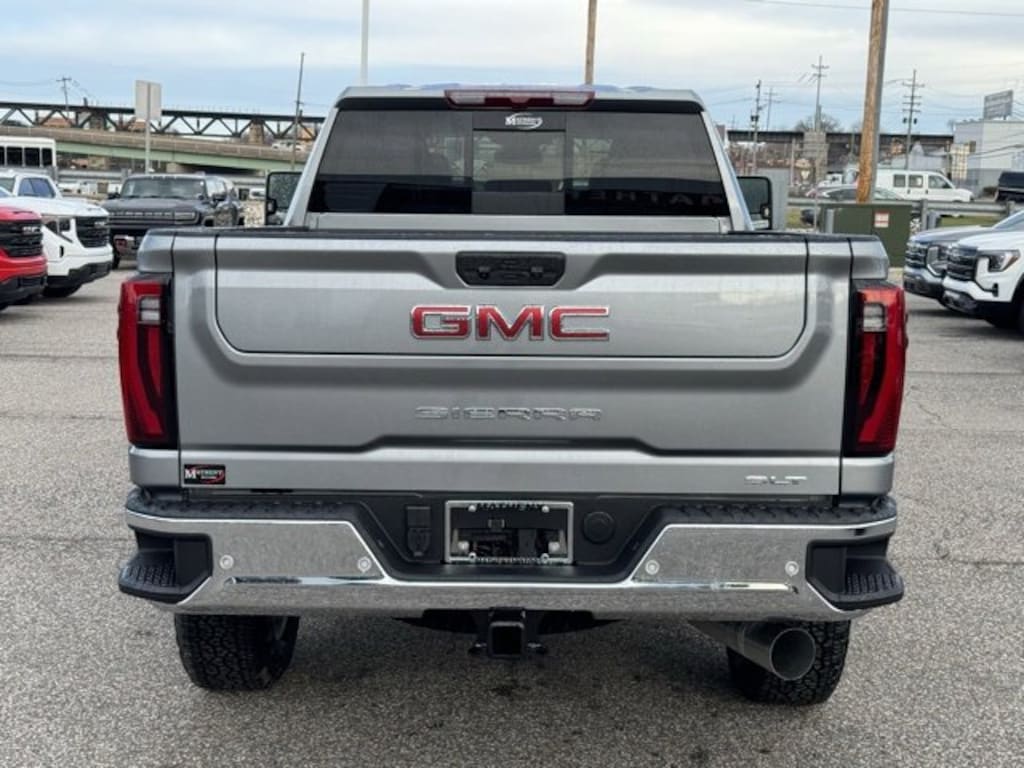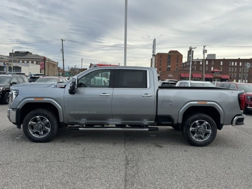 Sterling Metallic 2026 GMC Sierra 2500HD SLT 4WD 10-Speed Automatic Duramax 6.6L V8 Turbodiesel 10-Way Power Driver Seat Adjuster with Lumbar, 10-Way Power Passenger Seat Adjuster with Lumbar, 120-Volt Bed Mounted Power Outlet, 120-Volt Instrument Panel Power Outlet, 18 Machined Aluminum Wheels, 2 Charge-Only Rear USB Ports, 2 Charge/Data USB Ports, 2 Charge/Data USB Ports Inside Center Console, 2-Speed Active Transfer Case, 220-Amp Alternator, 4-Wheel Disc Brakes, 6 Speakers, 6-Speaker Audio System Feature, ABS brakes, Adaptive Cruise Control, Air Conditioning, All-Weather Floor Liners, Alloy wheels, AM/FM radio: SiriusXM with 360L, Apple CarPlay/Android Auto, Auto High-beam Headlights, Auto-dimming door mirrors, Auto-dimming Rear-View mirror, Automatic Emergency Braking, Automatic temperature control, Bed View Camera with Two Trailer Camera Provisions, Body Color Wheel Arch Moldings, Bose Premium 7-Speaker Sound System, Brake assist, Buckle to Drive, Bumpers: chrome, Chrome Surround Grille with Chrome Insert Bars, Compass, Deep-Tinted Glass, Delay-off headlights, Driver door bin, Driver Memory, Driver vanity mirror, Dual front impact airbags, Dual front side impact airbags, Electric Rear-Window Defogger, Electronic Stability Control, Emergency communication system: OnStar, Engine Block Heater, Exhaust Brake, Floor-Mounted Center Console, Following Distance Indicator, Forward Collision Alert, Front 40/20/40 Split-Bench Seats, Front anti-roll bar, Front Bucket Seats, Front Center Armrest w/Storage, Front dual zone A/C, Front fog lights, Front Pedestrian Braking, Front Rain-Sensing Wipers, Front reading lights, Front wheel independent suspension, Fully automatic headlights, GMC MultiPro Tailgate, GMC MultiPro Tailgate Step Lights, Gooseneck/5th Wheel Prep Package, HD Surround Vision, Heated 2nd Row Outboard Seats, Heated door mirrors, Heated Driver and Front Outboard Passenger Seats, Heated front seats, Heated steering wheel, Heavy-Duty 80 Amp Battery, Hill Descent Control, Hitch Guidance with Hitch View, Illuminated entry, in-Vehicle Trailering System App, IntelliBeam Automatic High Beam on/Off, Keyless Open and Start, Lane Departure Warning System, LED Cargo Area Lighting, LED Smoked Amber Roof Marker Lamps, Low tire pressure warning, Manual Tilt-Wheel/Telescoping Steering Column, Memory seat, Occupant sensing airbag, Off-Road Suspension, OnStar Services Capable, Outside temperature display, Overhead airbag, Overhead console, Panic alarm, Passenger door bin, Passenger vanity mirror, Perforated Leather-Appointed Front Outboard Seat Trim, Pickup Box, Power door mirrors, Power driver seat, Power Front Passenger Windows with Express Up/Down, Power passenger seat, Power Sliding Rear Window with Defogger, Power steering, Power Sunroof, Power windows, Preferred Equipment Group 4SA, Premium audio system: Premium GMC Infotainment System, Push Button Start, Radio: AM/FM Stereo with Premium GMC Infotainment System, Rain sensing wipers, Rear Cross Traffic Alert, Rear reading lights, Rear seat center armrest, Rear step bumper, Rear Wheelhouse Liners, Rear window defroster, Remote keyless entry, Remote Vehicle Starter System, Safety Alert Seat, Security system, Sierra HD Pro Safety Plus Package, SiriusXM with 360L Trial Subscription, SLT Convenience Package, SLT Preferred Package, SLT Premium Package, Speed control, Speed-sensing steering, Split folding rear seat, Spray-on Pickup Bedliner with GMC Logo, Steering Wheel Audio Controls, Steering wheel mounted audio controls, Suspension Package, Tachometer, Telescoping steering wheel, Tilt steering wheel, Traction control, Trailer Cam Provisions and Trailer Viewing Software, Trailer Side Blind Zone Alert, Trip computer, Turn signal indicator mirrors, Ultrasonic Front and Rear Park Assist, Unauthorized Entry Theft-Deterrent System, Universal Home Remote, Variably intermittent wipers, Ventilated Driver and Front Passenger Seats, Voltmeter, Wheels