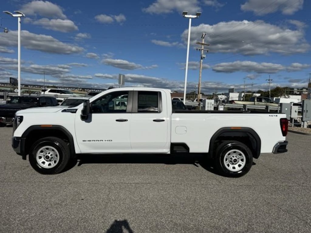 Summit White 2026 GMC Sierra 2500HD Pro 4WD 10-Speed Automatic 6.6L V8 120-Volt Bed Mounted Power Outlet, 120-Volt Instrument Panel Power Outlet, 2 Charge-Only Rear USB Ports, 2 Charge/Data USB Ports, 2-Speed Electronic Shift Transfer Case, 220-Amp Alternator, 3.73 Rear Axle Ratio, 4-Way Manual Driver Seat Adjuster, 4-Way Manual Passenger Seat Adjuster, 4-Wheel Disc Brakes, 6 Speakers, 6-Speaker Audio System Feature, ABS brakes, Air Conditioning, AM/FM radio, Apple CarPlay/Android Auto, Auto High-beam Headlights, Automatic Emergency Braking, Brake assist, Buckle to Drive, Bumpers: chrome, Chrome Grille w/Flat Black Grille Insert Bars, Compass, Convenience Package, Deep-Tinted Glass, Delay-off headlights, Driver door bin, Dual front impact airbags, Dual front side impact airbags, Electric Rear-Window Defogger, Electronic Stability Control, Emergency communication system: OnStar, EZ Lift Power Lock & Release Tailgate, Following Distance Indicator, Forward Collision Alert, Front 40/20/40 Split-Bench Seats, Front anti-roll bar, Front Center Armrest w/Storage, Front License Plate Kit, Front Pedestrian Braking, Front reading lights, Front wheel independent suspension, Fully automatic headlights, Heavy-Duty 80 Amp Battery, Illuminated entry, IntelliBeam Automatic High Beam On/Off, Lane Departure Warning System, LED Cargo Area Lighting, Low tire pressure warning, Occupant sensing airbag, OnStar Services Capable, Outside Power-Adjustable Black Mirrors, Outside temperature display, Overhead airbag, Overhead console, Panic alarm, Passenger door bin, Passenger vanity mirror, Pickup Box, Power steering, Power windows, Preferred Equipment Group 1SA, Premium audio system: GMC Infotainment System, Push Button Start, Radio: AM/FM w/GMC Infotainment System, Rear reading lights, Rear step bumper, Remote Keyless Entry, Remote keyless entry, Snow Plow Prep/Camper Package, Solar Absorbing Tinted Glass, Speed control, Split folding rear seat, Spray-On Pickup Bedliner, Suspension Package, Tachometer, Tilt steering wheel, Traction control, Trip computer, Variably intermittent wipers, Vinyl Seat Trim, Voltmeter, Wheels: 17 Silver Painted Steel, Wheels: 18 Silver 8-Spoke Painted Steel, Wireless Phone Projection.