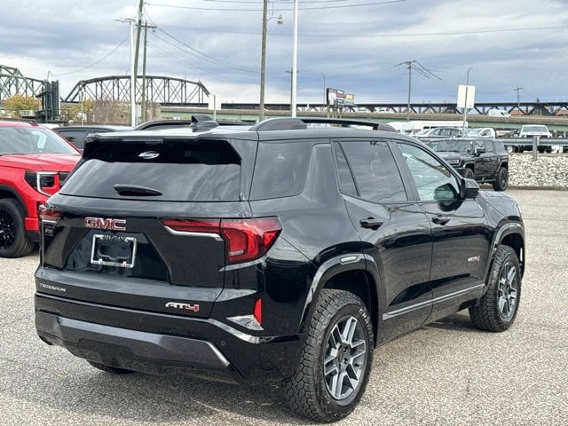 Ebony Twilight Metallic 2026 GMC Terrain AT4 AWD 8-Speed Automatic with Overdrive 1.5L DOHC 2-Way Power Driver Lumbar Seat Adjuster, 2-Way Power Front Passenger Lumbar Seat Adjuster, 3 Years SiriusXM, 3.47 Final Drive Axle Ratio, 4-Wheel Disc Brakes, 6 Speakers, 6-Speaker Audio System Feature, 8-Way Power Driver Seat Adjuster, 8-Way Power Passenger Seat Adjuster, ABS brakes, Air Conditioning, Alloy wheels, AM/FM radio: SiriusXM, Auto High-beam Headlights, Automatic temperature control, Brake assist, Bumpers: body-color, Cloth/Core Tec Seat Trim, Compass, Convenience Package III, Delay-off headlights, Driver and Front Passenger Heated Seats, Driver door bin, Driver vanity mirror, Dual front impact airbags, Dual front side impact airbags, Electronic Stability Control, Emergency communication system: OnStar and GMC connected services capable, Four wheel independent suspension, Front All-Weather Floor Liners, Front anti-roll bar, Front Bucket Seats, Front Center Armrest, Front dual zone A/C, Front fog lights, Front Passenger 4-Way Manual Seat Adjuster, Front reading lights, Fully automatic headlights, Garage door transmitter, Heated door mirrors, Heated front seats, Heated Rear Outboard Seats, Heated steering wheel, Illuminated entry, Low tire pressure warning, Memory Package, Navigation System, Occupant sensing airbag, Outside temperature display, Overhead airbag, Overhead console, Panic alarm, Passenger door bin, Passenger vanity mirror, Power door mirrors, Power driver seat, Power Liftgate, Power steering, Power windows, Preferred Equipment Group 4SB, Radio data system, Radio: Premium GMC Infotainment System, Rain sensing wipers, Rear air conditioning, Rear anti-roll bar, Rear seat center armrest, Rear window defroster, Rear window wiper, Remote keyless entry, Second Row All-Weather Mat, Security system, SiriusXM with 360L Trial Subscription, Speed control, Speed-sensing steering, Split folding rear seat, Spoiler, Sport steering wheel, Steering wheel mounted audio controls, Tachometer, Telescoping steering wheel, Tilt steering wheel, Traction control, Trip computer, Variably intermittent wipers, Ventilated Driver Seat, Ventilated Front Passenger Seat, Wheels: 17 Dark Machined Aluminum, Wireless Apple CarPlay/Wireless Android Auto.