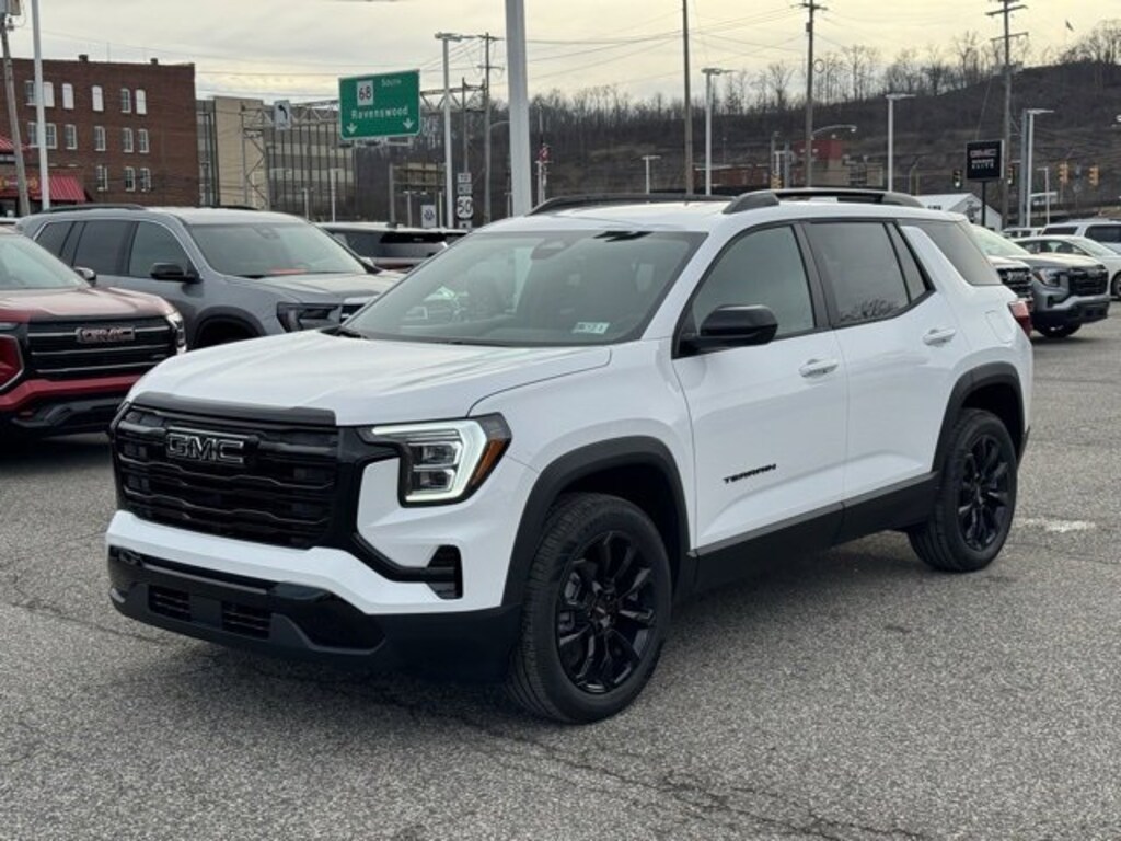 Summit White 2026 GMC Terrain Elevation AWD 8-Speed Automatic with Overdrive 1.5L DOHC 3 Years SiriusXM, 3.47 Final Drive Axle Ratio, 4-Wheel Disc Brakes, 6 Speakers, 6-Speaker Audio System Feature, ABS brakes, Air Conditioning, All-Weather Cargo Mat, Alloy wheels, AM/FM radio: SiriusXM, Auto High-beam Headlights, Automatic temperature control, Black Edition, Black Exterior Accents and Black Exterior Badging, Black Mirror Caps, Brake assist, Brushed Aluminum Roof Rails, Bumpers: body-color, Compass, Darkened Grille and C Shaped Surrounding Bezel, Delay-off headlights, Driver 6-Way Manual Seat Adjuster, Driver and Front Passenger Heated Seats, Driver door bin, Driver vanity mirror, Dual front impact airbags, Dual front side impact airbags, Electronic Stability Control, Emergency communication system: OnStar and GMC connected services capable, Floor Liner Package, Four wheel independent suspension, Front All-Weather Floor Liners, Front and Rear Black GMC Emblems, Front anti-roll bar, Front Bucket Seats, Front Center Armrest, Front Passenger 4-Way Manual Seat Adjuster, Front reading lights, Fully automatic headlights, Heated door mirrors, Heated front seats, Heated steering wheel, Illuminated entry, Low tire pressure warning, Navigation System, Occupant sensing airbag, Outside temperature display, Overhead airbag, Panic alarm, Passenger door bin, Passenger vanity mirror, Power door mirrors, Power steering, Power windows, Preferred Equipment Group 3SB, Premium Cloth Seat Trim, Radio data system, Radio: Premium GMC Infotainment System, Rear air conditioning, Rear anti-roll bar, Rear seat center armrest, Rear window defroster, Rear window wiper, Remote keyless entry, Second Row All-Weather Mat, Security system, SiriusXM with 360L Trial Subscription, Speed control, Speed-sensing steering, Split folding rear seat, Spoiler, Sport steering wheel, Steering wheel mounted audio controls, Tachometer, Telescoping steering wheel, Tilt steering wheel, Traction control, Trip computer, Variably intermittent wipers, Wheels: 17 Grazen Metallic Machined Aluminum, Wheels: 19 Gloss Black Painted Aluminum, Wireless Apple CarPlay/Wireless Android Auto.
