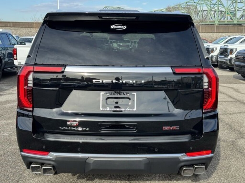 Onyx Black 2026 GMC Yukon Denali 4WD 10-Speed Automatic with Overdrive EcoTec3 6.2L V8 10 Speakers, 15 Diagonal Multi-Color Head-Up Display, 22 Bright Split-Spoke Wheels, 3 Years OnStar One, 3 Years SiriusXM, 3.23 Rear Axle Ratio, 3rd Row All-Weather Floor Liners, 3rd row seats: split-bench, 4-Way Power Driver Lumbar Seat Adjuster, 4-Way Power Front Passenger Lumbar Seat Adjuster, 4-Wheel Disc Brakes, ABS brakes, Adaptive suspension, Air Conditioning, All-Weather Cargo Mat, Alloy wheels, AM/FM radio: SiriusXM with 360L, Apple CarPlay/Android Auto, Audio memory, Auto High-beam Headlights, Auto-dimming door mirrors, Auto-dimming Rear-View mirror, Auto-leveling suspension, Automatic temperature control, AutoSense Hands-Free Power Liftgate, Bodyside moldings, Bose 10-Speaker Surround with CenterPoint, Brake assist, Bright Front and Rear Door Sill Plates, Bumpers: body-color, Compass, Delay-off headlights, Driver door bin, Driver vanity mirror, Dual Exhaust System, Dual front impact airbags, Dual front side impact airbags, Dual-Pane Panoramic Power Sunroof, Electronic Stability Control, Emergency communication system: OnStar and GMC connected services capable, Exterior Parking Camera Rear, First and Second Rows Premium Floor Liners, Floor Liner Package, Four wheel independent suspension, Front anti-roll bar, Front Bucket Seats, Front Center Armrest, Front dual zone A/C, Front fog lights, Front reading lights, Fully automatic headlights, Galvano Bodyside Moldings, Garage door transmitter, Heads-Up Display, Heated door mirrors, Heated Driver and Front Passenger Seats, Heated front seats, Heated rear seats, Heated steering wheel, Illuminated entry, Low tire pressure warning, Magnetic Ride Control Suspension, Memory seat, Navigation system: GMC Connected Navigation, Occupant sensing airbag, Outside temperature display, Overhead airbag, Overhead console, Panic alarm, Passenger door bin, Passenger vanity mirror, Perforated Heather and Ventilated Driver and Front Passenger Seats, Perforated Leather Seating Surfaces, Power door mirrors, Power driver seat, Power Liftgate, Power passenger seat, Power Release 2nd Row Bucket Seats, Power steering, Power Tilt and Telescopic Steering Column, Power windows, Power-Retractable Assist Steps, Radio: 16.8 Diagonal Premium GMC Infotainment System, Rain sensing wipers, Rear air conditioning, Rear anti-roll bar, Rear reading lights, Rear window defroster, Rear window wiper, Remote keyless entry, Security system, SiriusXM with 360L, Speed control, Speed-sensing steering, Split folding rear seat, Spoiler, Steering wheel memory, Steering wheel mounted audio controls, Sun and Power Step Package, Tachometer, Telescoping steering wheel, Tilt steering wheel, Traction control, Trip computer, Turn signal indicator mirrors, Variably intermittent wipers, Ventilated front seats, Voltmeter, Wheels: 20 x 9 6-Spoke Polished Aluminum, Wheels: 22 x 9 Steel Interim.