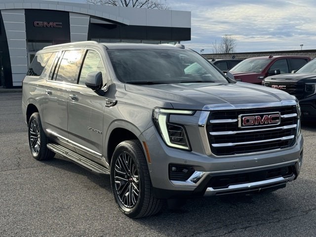 Sterling Metallic 2026 GMC Yukon XL Elevation 4WD 10-Speed Automatic with Overdrive EcoTec3 5.3L V8 10 Speakers, 1st and 2nd Rows All-Weather Floor Liners, 22 6-Spoke Low Gloss Black Wheels, 3 Years SiriusXM, 3.23 Rear Axle Ratio, 3rd Row All-Weather Floor Liners, 3rd row seats: split-bench, 4-Wheel Disc Brakes, ABS brakes, Air Conditioning, All-Weather Cargo Mat, Alloy wheels, AM/FM radio: SiriusXM with 360L, Apple CarPlay/Android Auto, Audio memory, Auto High-beam Headlights, Auto-dimming door mirrors, Auto-dimming Rear-View mirror, Automatic temperature control, Bodyside moldings, Bose 10-Speaker Surround with CenterPoint, Brake assist, Bumpers: body-color, Compass, CoreTech/Perforated Leather-Appointed Seating, Delay-off headlights, Driver door bin, Driver vanity mirror, Dual front impact airbags, Dual front side impact airbags, Electronic Stability Control, Emergency communication system: OnStar and GMC connected services capable, Exterior Parking Camera Rear, Floor Console, Floor Liner Package, Four wheel independent suspension, Front anti-roll bar, Front Bucket Seats, Front Center Armrest, Front dual zone A/C, Front fog lights, Front reading lights, Fully automatic headlights, Garage door transmitter, Heated door mirrors, Heated Driver and Front Passenger Seats, Heated front seats, Heated rear seats, Heated steering wheel, Illuminated entry, Low tire pressure warning, Memory seat, Navigation system: GMC Connected Navigation, Occupant sensing airbag, Outside temperature display, Overhead airbag, Overhead console, Panic alarm, Passenger door bin, Passenger vanity mirror, Power door mirrors, Power driver seat, Power Liftgate, Power passenger seat, Power Release 2nd Row Bucket Seats, Power steering, Power windows, Preferred Equipment Group 4SA, Premium Smooth Ride Suspension, Radio: 16.8 Diagonal Premium GMC Infotainment System, Rain sensing wipers, Rear air conditioning, Rear anti-roll bar, Rear reading lights, Rear seat center armrest, Rear window defroster, Rear window wiper, Remote keyless entry, Security system, SiriusXM with 360L, Speed control, Speed-sensing steering, Split folding rear seat, Spoiler, Steering wheel mounted audio controls, Tachometer, Telescoping steering wheel, Tilt steering wheel, Traction control, Trip computer, Turn signal indicator mirrors, Variably intermittent wipers, Voltmeter, Wheels: 20 x 9 Machined and Painted, Wheels: 22 x 9 Steel Interim.