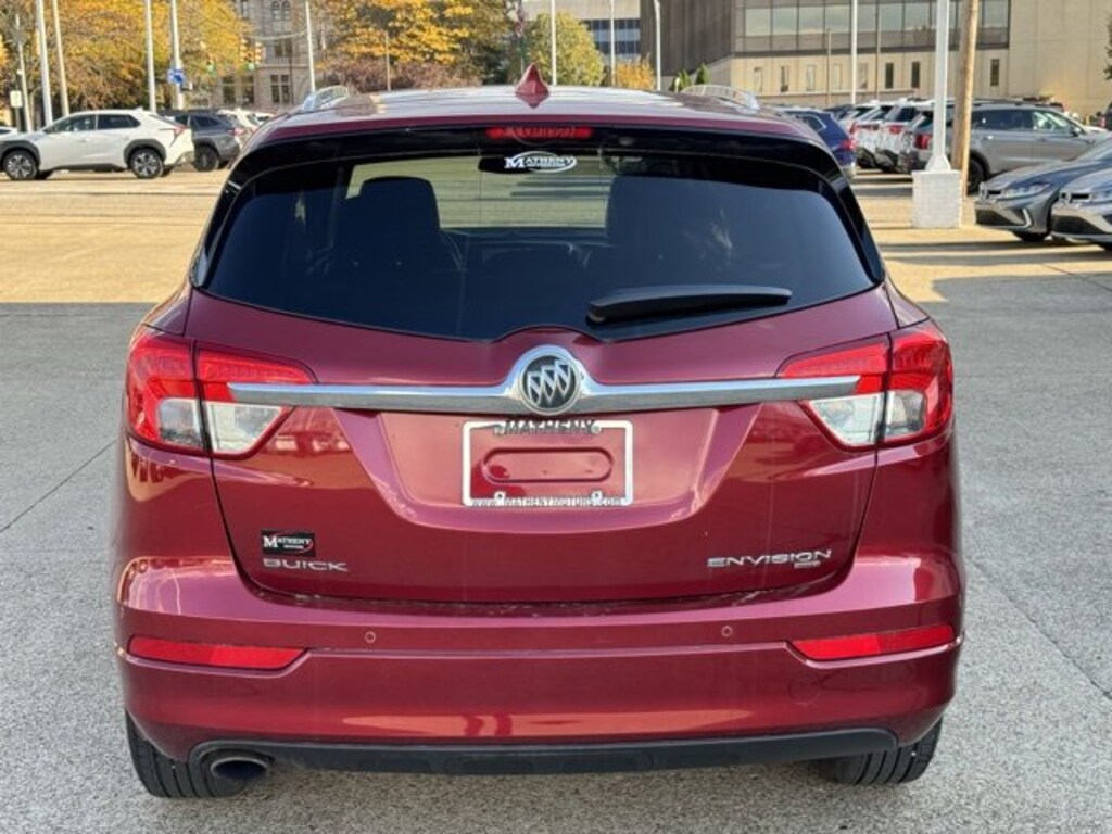 The Matheny Family has been in business for over 100 years, buy with confidence!!!!21/28 City/Highway MPG Recent Arrival!18 10-Spoke Polished Aluminum Wheels, 3.50 Final Drive Axle Ratio, 4-Wheel Disc Brakes, 6 Speakers, 6-Speaker Audio System Feature, ABS brakes, Air Conditioning, Alloy wheels, AM/FM radio: SiriusXM, Apple CarPlay/Android Auto, Auto-dimming door mirrors, Auto-dimming Rear-View mirror, Automatic temperature control, Brake assist, Bumpers: body-color, Compass, Delay-off headlights, Driver 8-Way Power Seat Adjuster, Driver door bin, Driver vanity mirror, Dual front impact airbags, Dual front side impact airbags, Electronic Stability Control, Emergency communication system: OnStar Guidance, Exterior Parking Camera Rear, Four wheel independent suspension, Front anti-roll bar, Front Bucket Seats, Front Center Armrest, Front dual zone A/C, Front fog lights, Front Passenger 8-Way Power Seat Adjuster, Front reading lights, Fully automatic headlights, Garage door transmitter, Heated door mirrors, Heated Driver & Front Passenger Seats, Heated front seats, Heated rear seats, Heated steering wheel, Illuminated entry, Knee airbag, Low tire pressure warning, Memory seat, Occupant sensing airbag, Outside temperature display, Overhead airbag, Overhead console, Panic alarm, Passenger door bin, Passenger vanity mirror, Perforated Leather-Appointed Seat Trim, Power door mirrors, Power driver seat, Power Liftgate, Power passenger seat, Power steering, Power windows, Preferred Equipment Group 1SL, Premium audio system: IntelliLink, Radio data system, Radio: Buick IntelliLink AM/FM Stereo, Rear air conditioning, Rear anti-roll bar, Rear Parking Sensors, Rear reading lights, Rear seat center armrest, Rear side impact airbag, Rear window defroster, Rear window wiper, Remote keyless entry, Roof rack: rails only, Security system, SiriusXM Satellite Radio, Speed control, Speed-sensing steering, Split folding rear seat, Spoiler, Steering wheel mounted audio controls, Tachometer, Telescoping steering wheel, Tilt steering wheel, Traction control, Trip computer, Turn signal indicator mirrors, Variably intermittent wipers.2017 Buick Envision Essence Chili Red Metallic 4D Sport Utility AWD 6-Speed Automatic 2.5L 4-Cylinder DGI DOHC VVTAwards:* 2017 IIHS Top Safety Pick+ with optional front crash prevention and specific headlights * 2017 IIHS Top Safety Pick+ with optional front crash prevention * 2017 KBB.com Brand Image Awards