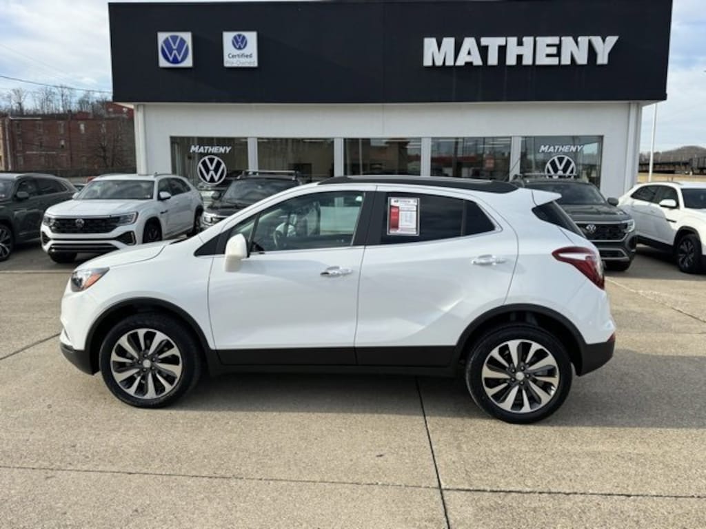 The Matheny Family has been in business for over 100 years, buy with confidence!!!!Priced below KBB Fair Purchase Price! Odometer is 5242 miles below market average! 23/30 City/Highway MPG120-Volt Power Outlet, 18 Aluminum Wheels, 2-Way Manual Front Passenger Seat Adjuster, 3.53 Final Drive Axle Ratio, 4-Wheel Disc Brakes, 6 Speakers, 6-Speaker Audio System, 6-Way Power Driver Seat Adjuster, ABS brakes, Air Conditioning, All-Weather Floor Mats, Alloy wheels, AM/FM radio: SiriusXM, Apple CarPlay/Android Auto, Brake assist, Buick Interior Protection Package (LPO), Bumpers: body-color, Cloth w/Leatherette Seat Trim, Color-Keyed Carpeted Cargo Mat (LPO), Compass, Delay-off headlights, Driver door bin, Driver vanity mirror, Driver's Seat Mounted Armrest, Dual front impact airbags, Dual front side impact airbags, Electronic Stability Control, Emergency communication system: OnStar and Buick connected services capable, Exterior Parking Camera Rear, Front anti-roll bar, Front Bucket Seats, Front License Plate Bracket, Front reading lights, Front wheel independent suspension, Fully automatic headlights, Heated door mirrors, Illuminated entry, Knee airbag, Leather steering wheel, Low tire pressure warning, Occupant sensing airbag, Outside temperature display, Overhead airbag, Panic alarm, Passenger door bin, Passenger vanity mirror, Power door mirrors, Power driver seat, Power steering, Power windows, Preferred Equipment Group 1SB, Radio data system, Radio: 7 Diagonal Buick Infotainment System, Rear Cross Traffic Alert, Rear seat center armrest, Rear side impact airbag, Rear window defroster, Rear window wiper, Remote keyless entry, Remote Vehicle Starter System, Ride & Handling Suspension, Roof rack: rails only, Safety Package, Security system, Side Blind Zone Alert, SiriusXM Radio, Speed control, Speed-sensing steering, Split folding rear seat, Spoiler, Steering wheel mounted audio controls, Tachometer, Telescoping steering wheel, Tilt steering wheel, Traction control, Trip computer, Variably intermittent wipers.2022 Buick Encore Preferred Summit White 4D Sport Utility AWD 6-Speed Automatic Electronic with Overdrive 1.4L ECOTEC Turbo VVT DOHC 4-Cyl SIDI