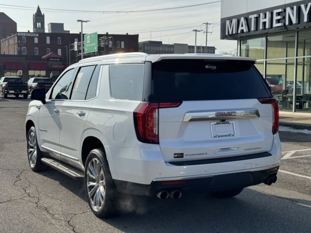 The Matheny Family has been in business for over 100 years, buy with confidence!!!!Priced below KBB Fair Purchase Price! Odometer is 24144 miles below market average!12-Way Power Seat Adjusters, 14 Speakers, 15 Diagonal Multi-Color Head-Up Display, 2 Presets For Outside Rearview Mirrors, 3.23 Rear Axle Ratio, 3rd Row 60/40 Power-Folding Split-Bench Seat, 3rd row seats: split-bench, 4-Wheel Disc Brakes, ABS brakes, Adaptive suspension, Air Conditioning, Alloy wheels, AM/FM radio: SiriusXM with 360L, Apple CarPlay/Android Auto, Auto High-beam Headlights, Auto-dimming door mirrors, Auto-dimming Rear-View mirror, Auto-leveling suspension, Automatic Emergency Braking, Automatic temperature control, Bodyside moldings, Bose 14-Speaker Surround w/CenterPoint, Brake assist, Bright Front & Rear Door Sill Plates, Bumpers: body-color, Chrome Door Handles w/Body-Color Strip, Compass, Delay-off headlights, Driver door bin, Driver vanity mirror, Dual Exhaust System, Dual front impact airbags, Dual front side impact airbags, Dual-Pane Panoramic Power Sunroof, Electronic Stability Control, Emergency communication system: OnStar and GMC connected services capable, Following Distance Indicator, Forward Collision Alert, Four wheel independent suspension, Front & Rear Park Assist, Front anti-roll bar, Front Bucket Seats, Front Center Armrest, Front dual zone A/C, Front fog lights, Front Pedestrian Braking, Front reading lights, Fully automatic headlights, Galvano Bodyside Moldings, Garage door transmitter, Hands-Free Power Programmable Rear Liftgate, HD Radio, HD Surround Vision, Heads-Up Display, Heated & Ventilated Driver & Front Passenger Seats, Heated 2nd Row Outboard Position Seats, Heated Automatic Steering Wheel, Heated door mirrors, Heated Driver & Front Passenger Seats, Heated front seats, Heated rear seats, Heated steering wheel, Hill Descent Control, Illuminated entry, Inside Rear-View Auto-Dimming Mirror, IntelliBeam Automatic High Beam On/Off, Lane Change Alert w/Side Blind Zone Alert, Lane Keep Assist w/Lane Departure Warning, Leather steering wheel, License Plate Front Mounting Package, Low tire pressure warning, Magnetic Ride Control Suspension, Memory seat, Navigation System, Not Equipped w/Automatic Stop/Start, Occupant sensing airbag, Outside Heated Power-Adjustable Mirrors, Outside temperature display, Overhead airbag, Overhead console, Panic alarm, Passenger door bin, Passenger vanity mirror, Perforated Leather Seating Surfaces, Power door mirrors, Power driver seat, Power Liftgate, Power passenger seat, Power Release 2nd Row Bucket Seats, Power steering, Power Tilt & Telescopic Steering Column, Power windows, Preferred Equipment Group 5SA, Radio: AM/FM/SiriusXM w/Navigation, Rain sensing wipers, Rear air conditioning, Rear anti-roll bar, Rear Cross Traffic Alert, Rear Pedestrian Alert, Rear reading lights, Rear window defroster, Rear window wiper, Remote keyless entry, Roof rack: rails only, Safety Alert Seat, Security system, SiriusXM w/360L, Speed control, Speed-sensing steering, Split folding rear seat, Spoiler, Steering wheel memory, Steering wheel mounted audio controls, Tachometer, Telescoping steering wheel, Tilt steering wheel, Traction control, Trip computer, Turn signal indicator mirrors, Universal Home Remote, Variably intermittent wipers, Ventilated front seats, Voltmeter, Wheels: 20 x 9 6-Spoke Polished Aluminum.2021 GMC Yukon Denali White Frost Tricoat 4D Sport Utility 4WD 10-Speed Automatic with Overdrive EcoTec3 6.2L V8
