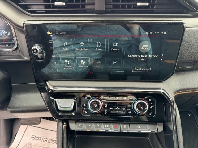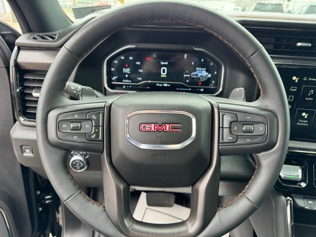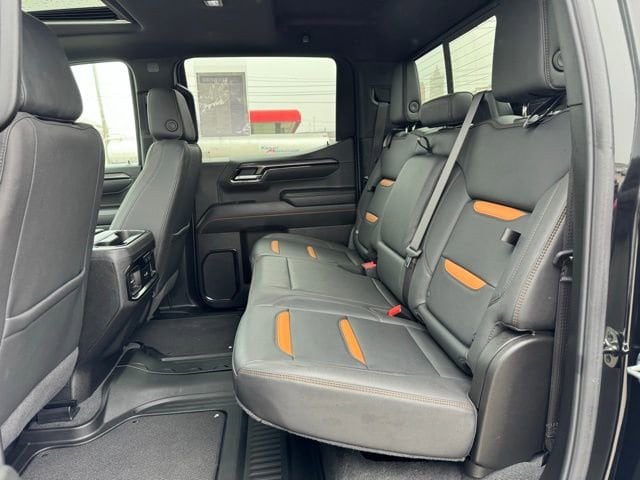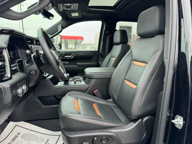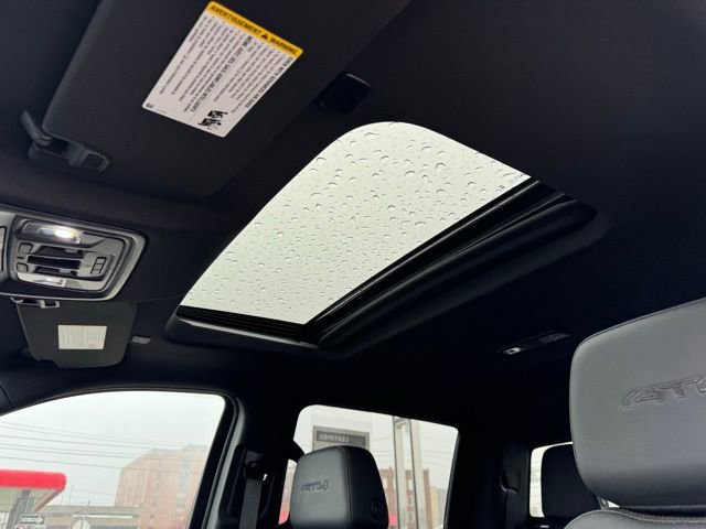 10-Way Power Driver Seat Adjuster w/Lumbar, 10-Way Power Passenger Seat Adjuster w/Lumbar, 120-Volt Bed Mounted Power Outlet, 120-Volt Interior Power Outlet, 170 Amp Alternator, 2 Charge/Data USB Ports Inside Center Console, 2 Type-C Charge-Only Rear USB Ports, 2 USB Ports, 220 Amp Alternator, 3.23 Rear Axle Ratio, 4-Wheel Disc Brakes, 7 Speakers, ABS brakes, Air Conditioning, Alloy wheels, AM/FM radio: SiriusXM with 360L, Apple CarPlay/Android Auto, AT4 Preferred Package, AT4 Premium Package, Auto High-beam Headlights, Auto-dimming door mirrors, Auto-dimming Rear-View mirror, Auto-Locking Rear Differential, Automatic Emergency Braking, Automatic temperature control, Auxiliary External Transmission Oil Cooler, Bed View Camera, Black Chrome Grille Insert Bars, Block heater, Brake assist, Buckle to Drive, Bumpers: body-color, Chrome Mirror Caps, Color-Keyed Carpeting Floor Covering, Compass, Deep-Tinted Glass, Delay-off headlights, Driver door bin, Driver Memory, Driver vanity mirror, Dual Active Exhaust, Dual front impact airbags, Dual front side impact airbags, Electric Rear-Window Defogger, Electronic Stability Control, Emergency communication system: OnStar, External Engine Oil Cooling, Floor-Mounted Center Console, Following Distance Indicator, Forward Collision Alert, Front & Rear Black Molded Splash Guards (LPO), Front anti-roll bar, Front Bucket Seats, Front Center Armrest, Front dual zone A/C, Front fog lights, Front Pedestrian Braking, Front Prem Floor Liners w/Removable Carpet Insert, Front Rain-Sensing Wipers, Front reading lights, Front wheel independent suspension, Fully automatic headlights, Hard Folding Truck Bed Cover (LPO), HD Surround Vision, Heated 2nd Row Outboard Seats, Heated door mirrors, Heated Driver & Front Outboard Passenger Seating, Heated front seats, Heated rear seats, Heated steering wheel, Heavy-Duty Air Filter, Hill Descent Control, Hitch Guidance, Hitch View, Illuminated entry, In-Vehicle Trailering System App, Integrated Trailer Brake Controller, IntelliBeam Automatic High Beam On/Off, Keyless Open & Start, Lane Keep Assist w/Lane Departure Warning, LED Cargo Area Lighting, Low tire pressure warning, Memory seat, Multicolor 15 Diagonal Head-Up Display, Navigation System, Occupant sensing airbag, Off-Road High Clearance Step (LPO), Off-Road Suspension, OnStar Services Capable, Outside temperature display, Overhead airbag, Overhead console, Panic alarm, Passenger door bin, Passenger vanity mirror, Perforated Front Leather Seat Trim, Perimeter Lighting, Power Door Locks, Power door mirrors, Power driver seat, Power Front Passenger Windows w/Express Up/Down, Power Front Windows w/Driver Express Up/Down, Power passenger seat, Power Rake & Telescoping Steering Column, Power Rear Windows w/Express Down, Power Sliding Rear Window w/Rear Defogger, Power steering, Power Sunroof, Power windows, Preferred Equipment Group 4SB, Premium Bose 7-Speaker Sound System, Push Button Start, Pwr-Adjustable Vertical Trailering Outside Mirrors, Radio data system, Radio: Premium GMC Infotainment Audio System, Rain sensing wipers, Rear Camera Mirror, Rear Cross Traffic Braking, Rear Pedestrian Detection, Rear Prem Floor Liners w/Removable Carpet Insert, Rear reading lights, Rear seat center armrest, Rear step bumper, Rear Wheelhouse Liners, Rear window defroster, Red Recovery Hooks, Remote keyless entry, Remote Vehicle Starter System, Safety Alert Seat, Security system, SiriusXM w/360L Trial Subscription, Speed control, Speed-sensing steering, Split folding rear seat, Spray-On Pickup Bedliner w/GMC Logo, Steering Wheel Audio Controls, Steering wheel mounted audio controls, Tachometer, Technology Package, Telescoping steering wheel, Theft Deterrent System (Unauthorized Entry), Tilt steering wheel, Traction control, Trailer Camera P