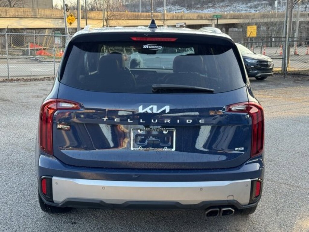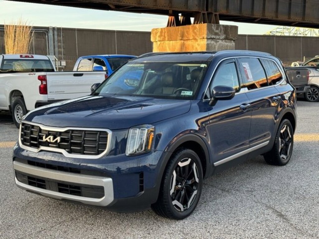 The Matheny Family has been in business for over 100 years, buy with confidence!!!!Priced below KBB Fair Purchase Price! Recent Arrival!3.648 Axle Ratio, 3rd row seats: split-bench, 4-Wheel Disc Brakes, 6 Speakers, ABS brakes, Air Conditioning, Alloy wheels, AM/FM radio: SiriusXM, Apple CarPlay & Android Auto, Auto High-beam Headlights, Automatic temperature control, Brake assist, Bumpers: body-color, Carpet Floor Mats, Delay-off headlights, Driver door bin, Driver vanity mirror, Dual front impact airbags, Dual front side impact airbags, Electronic Stability Control, Emergency communication system: 911 Connect, Exterior Parking Camera Rear, Four wheel independent suspension, Front anti-roll bar, Front Bucket Seats, Front Center Armrest, Front dual zone A/C, Front reading lights, Fully automatic headlights, Heated door mirrors, Heated Front Bucket Seats, Heated front seats, Illuminated entry, Knee airbag, Leather Shift Knob, Leather steering wheel, Low tire pressure warning, Navigation System, Occupant sensing airbag, Outside temperature display, Overhead airbag, Overhead console, Panic alarm, Passenger door bin, Passenger vanity mirror, Power door mirrors, Power driver seat, Power steering, Power Sunroof w/Sunshade, Power windows, Radio data system, Radio: AM/FM Display Audio System, Rear air conditioning, Rear anti-roll bar, Rear audio controls, Rear reading lights, Rear side impact airbag, Rear window defroster, Rear window wiper, Reclining 3rd row seat, Remote keyless entry, Roof rack: rails only, S Sunroof Package, Security system, Smart Key w/ Push Button and Remote Start, Speed control, Speed-sensing steering, Split folding rear seat, Spoiler, Steering wheel mounted audio controls, SynTex Synthetic Leather Seat Trim, Tachometer, Telescoping steering wheel, Tilt steering wheel, Traction control, Trip computer, Turn signal indicator mirrors, Variably intermittent wipers, Wheels: 20 x 7.5 Black Finish.2023 Kia Telluride S Midnight Lake Blue 4D Sport Utility AWD 8-Speed Automatic 3.8L V6 DGI DOHC Dual CVVT